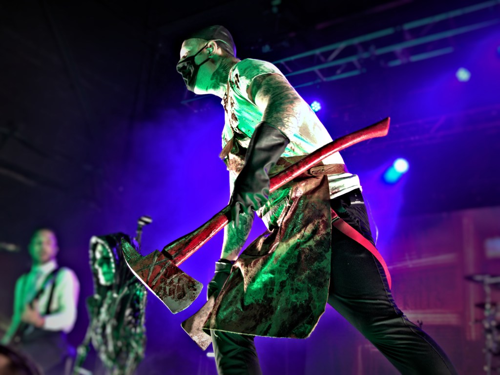 Closing out the night was horror-core legends Ice Nine Kills. Ice Nine Kills is always impressive with their dramatic horror-themed performances. Each song is like it’s own mini horror film, full of exquisitely crafted costumes and perfectly choreographed actors to bring the terror to life. After opening with “Welcome to Horrorwood”, the band tore into “Wurst Vacation” (a nod to the movie Hostel), followed by “Hip to be Scared” (American Psycho), “Stabbing in the Dark” (Halloween), “IT is the End” (IT), and more, finishing out their set with “The American Nightmare” (Nightmare on Elm Street).