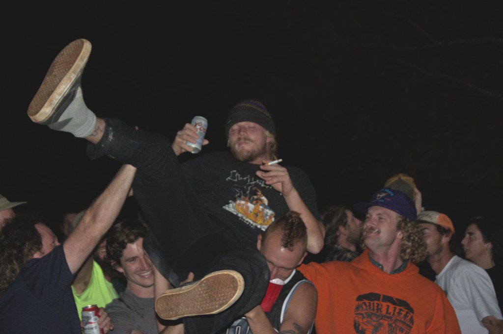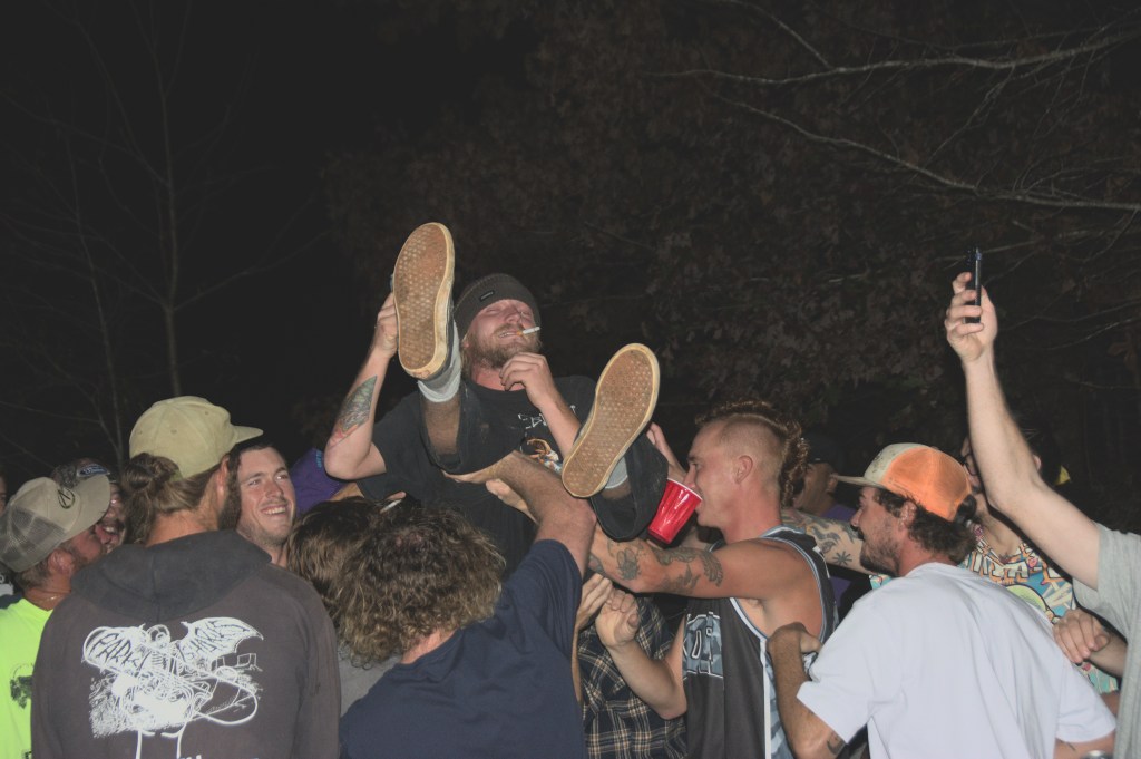 The hosting venue was the unfinished DIY skatepark, Goatpen in Mooresville, NC. If you want to support the finishing and upkeep of the park, you can buy their merch at www.goatpenskatepark.bigcartel.com