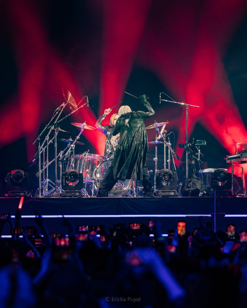 Fans also found moments in between sets to fling everything from bunny ears and plushies to bras on stage. As HYDE proudly arranged his bra collection on his mic stand and YOSHIKI was bestowed bunny ears to wear, the latter couldn’t help but jokingly let out a “The fuck is going on?” and “Who the fuck are we?” slip out amidst the playful chaos.