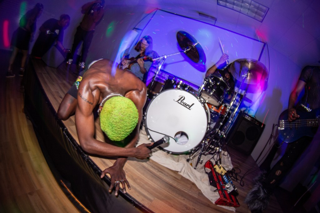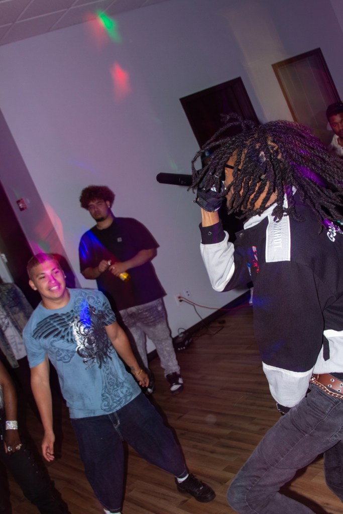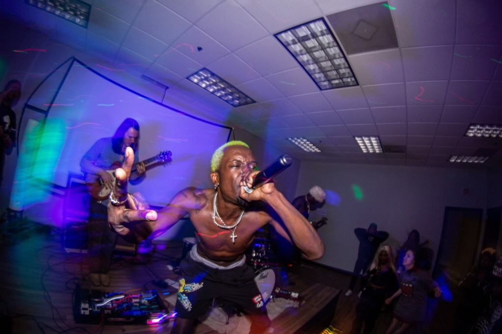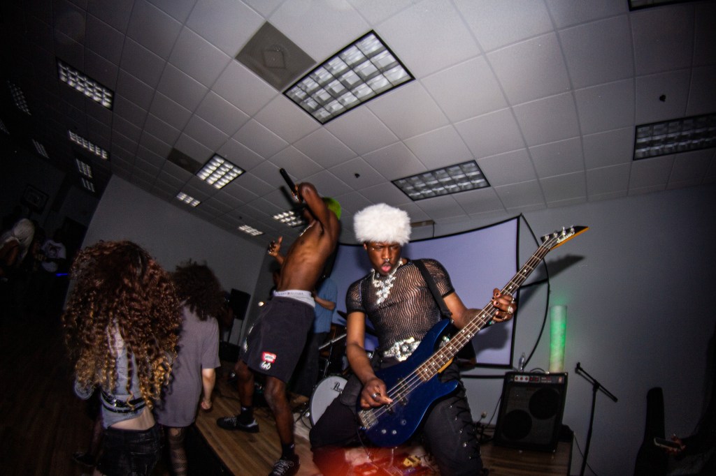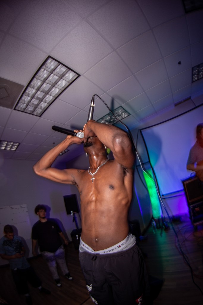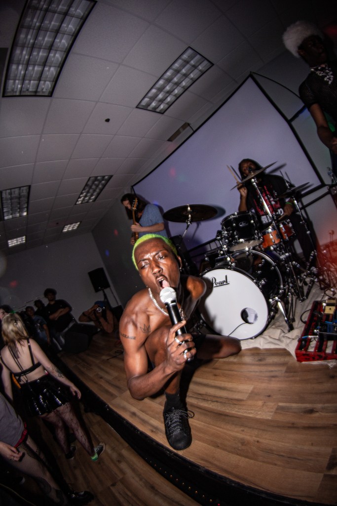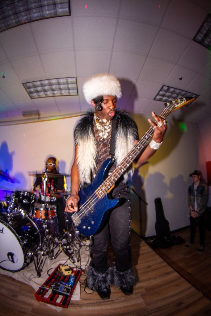 Next up, rapper H1mward kept the energy up with friends turning up on stage and people dancing in the crowd. Finally, punk rapper and headliner Austin Royale closed out the show with an intense performance. Kicking off his set with a long but perfect build up to his newest single “Miss Fortune”, the crowd went crazy for the song and only got better as he performed a few upcoming songs throughout the set. The bassist, Isaiah Harris, really stood out with a unique outfit and an indescribable menacing feel coming from his performance. Austin’s energetic performance was contagious, he was running through the crowd, moshing, crawling around on stage, and really just going all out.
