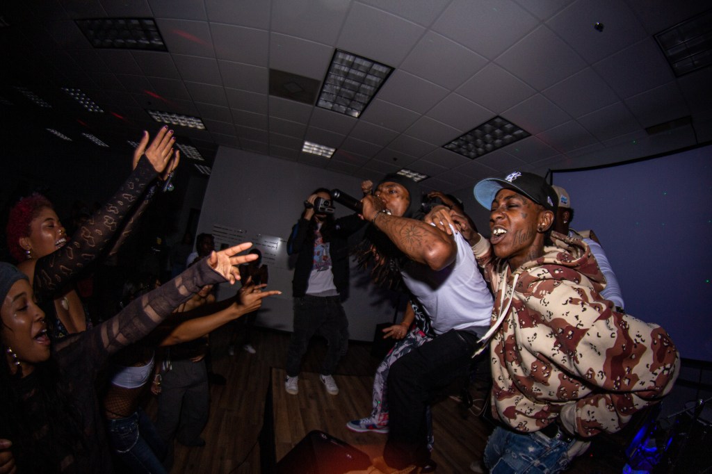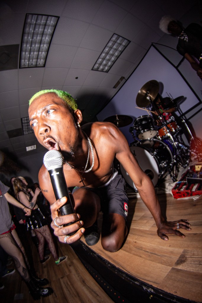 The show started off with rapper Viina warming up the crowd by performing songs from his debut album ‘NeverTooMuch’ released on March 22nd, 2023. The second set was rap “punkstar” Preme Hardy. A performer who got everyone in the room HYPE as he was moshing with everyone, regardless of his recently broken finger. Next up was local “jazzed up hardcore” band Concrete Daisies, who I’ve seen perform a couple times now and it’s always exciting seeing the energy from singer Bailey Wray as he’s always doing something interesting when you see him performing. One moment he’s standing there screaming in the microphone, then ten seconds later he’s laying on the ground.