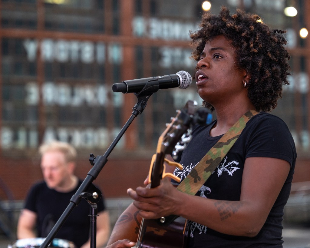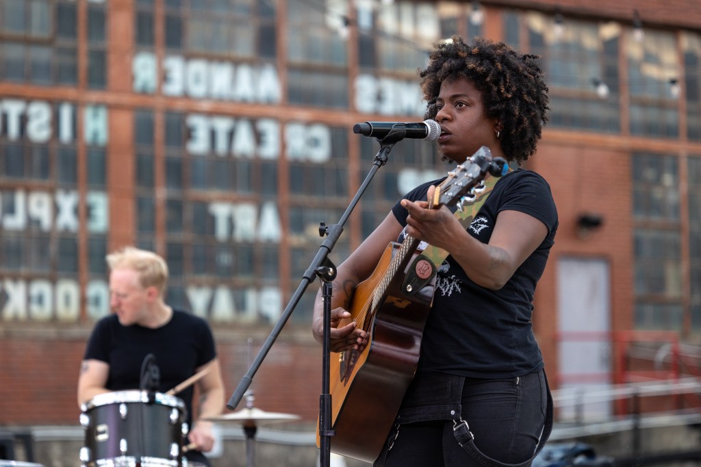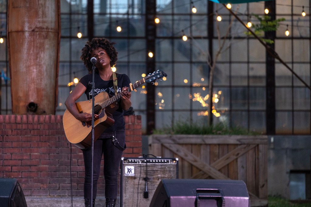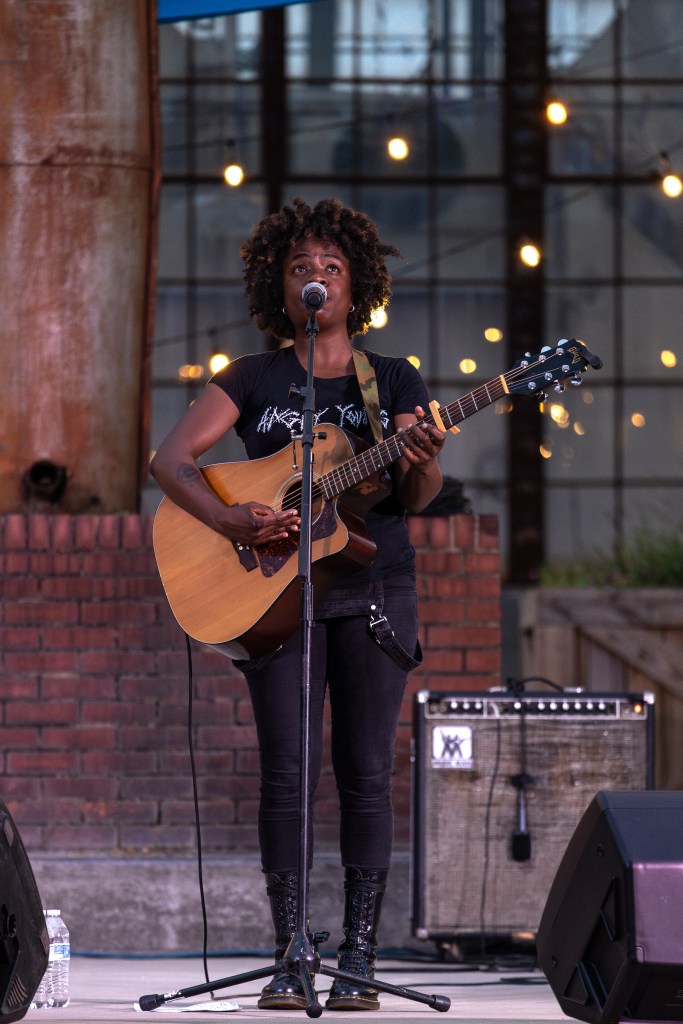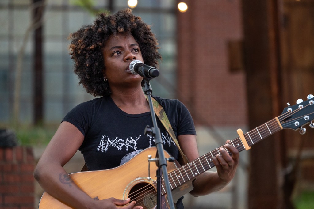 Her guitar work is the kinda thing you need to experience live. Recorded, the tracks sound flawless and as complex as you’d expect from a studio musician, but when you see her live you realize all that virtuosic complexity is channeling entirely through her old acoustic guitar. She plays with a clawhammer style akin to bluesmen of old, thumbing a bass line while simultaneously picking spidery riffs and melodies, creating a full-bodied sound that doesn’t require accompaniment.