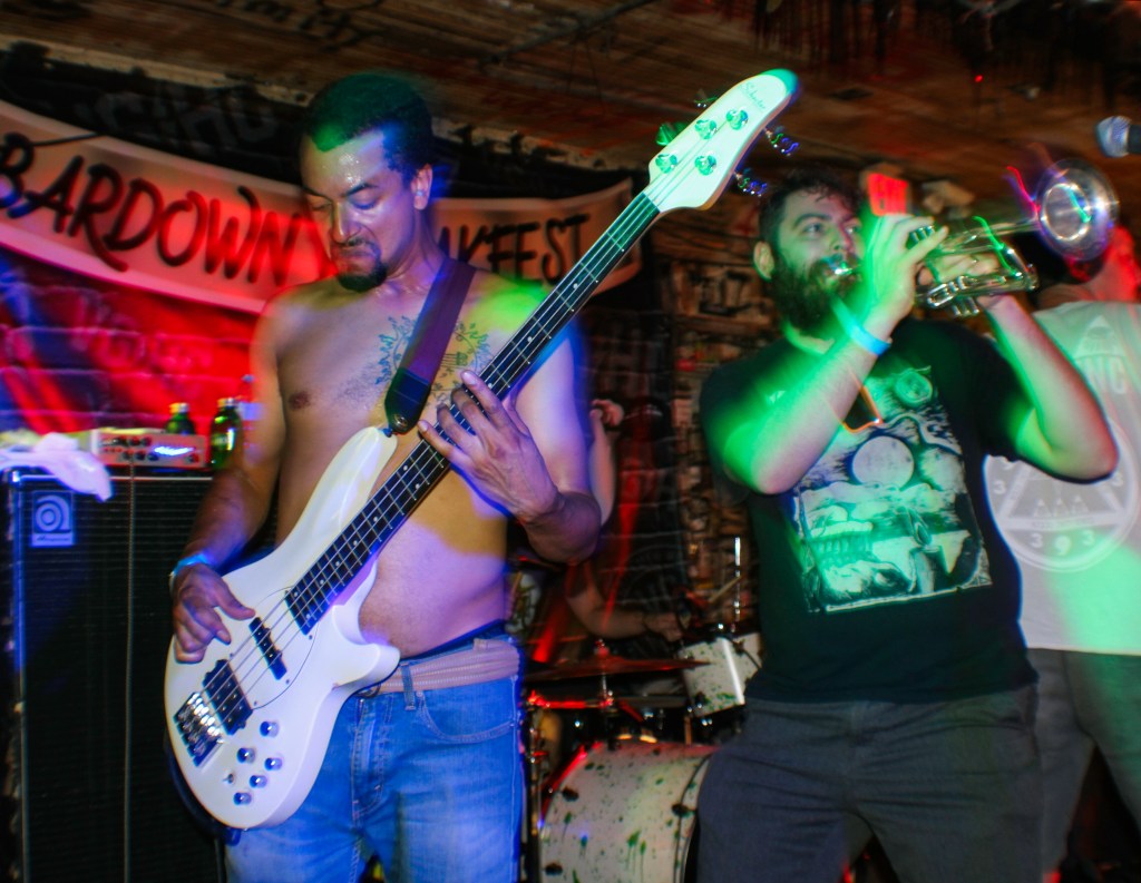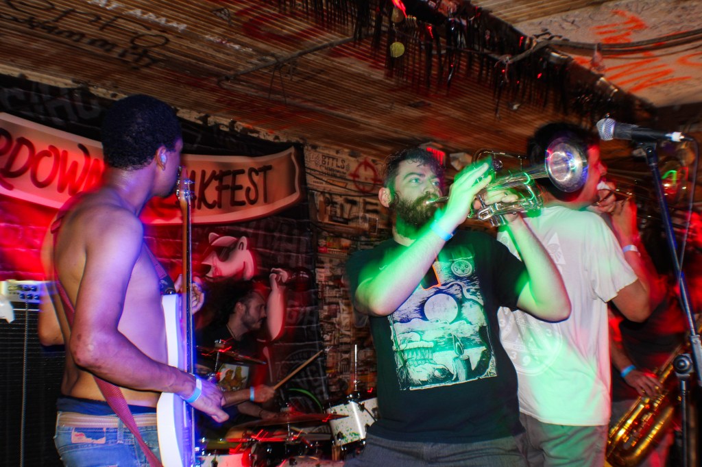 Corporate Fandango’s unique collaboration of instruments brought a more interesting sound to the show. The funky bass, hard drums, and insane guitar combined with ska-like sounds on the trumpet, trombone, and sax made me wish I could put down my camera!