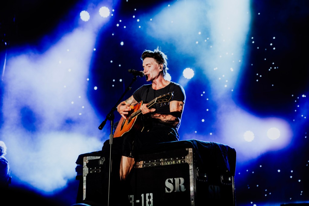 The Goo Goo Dolls set around 9:00PM and lasted around two hours. A few minutes after 9, singer John Rzeznik walked onto the stage with a boot on as he broke his foot while walking off the stage the show before. Luckily, the show went on and he sat down the entire time with assistance from crew members on getting new guitars and getting situated.
