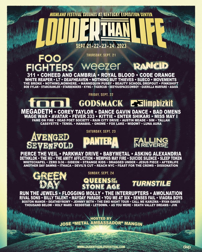 The line up for the 2023 Louder than Life Festival is stacked with a huge range of talented artists and bands. Headlining the festival are iconic acts including Foo Fighters, Weezer, and Green Day. Other must-see acts include Turnstile, Movements, Bad omens, and many more.