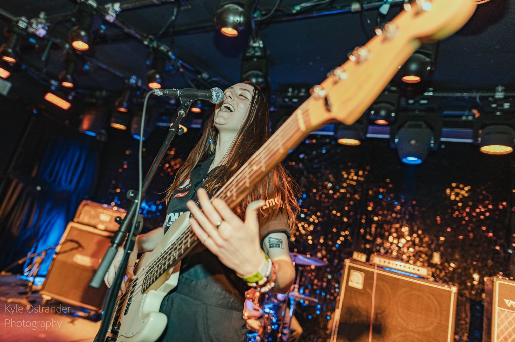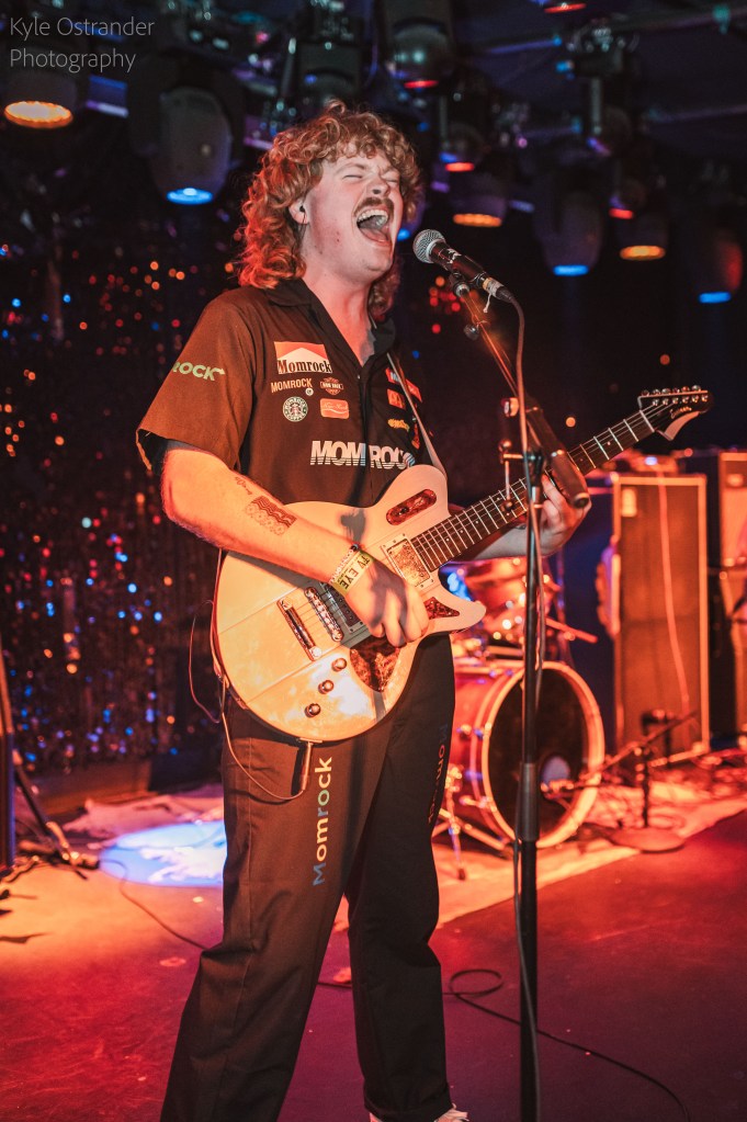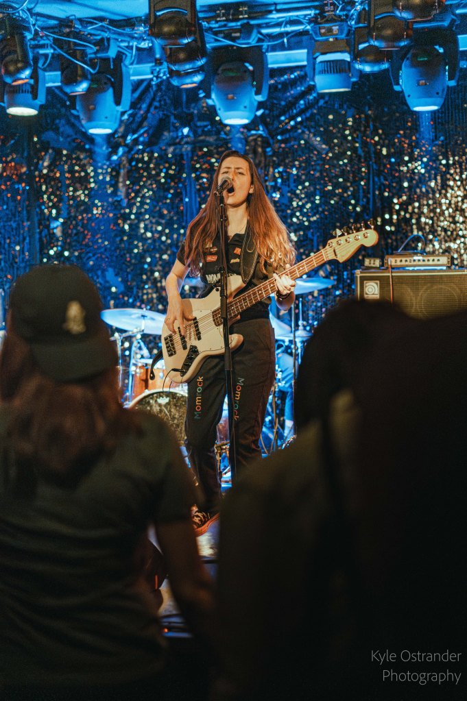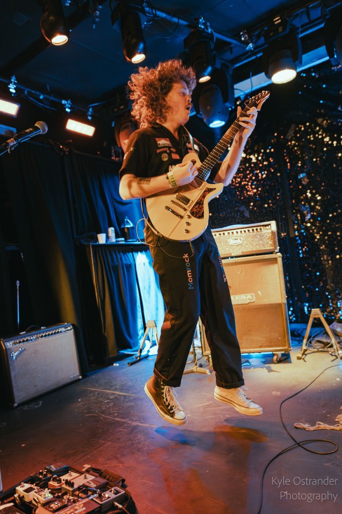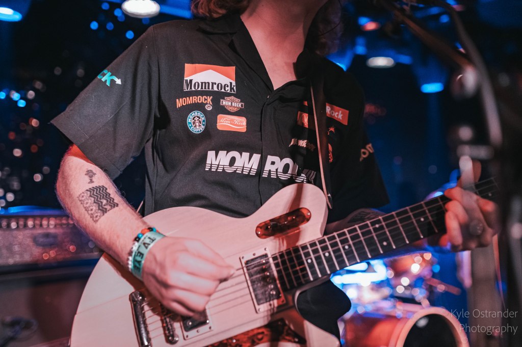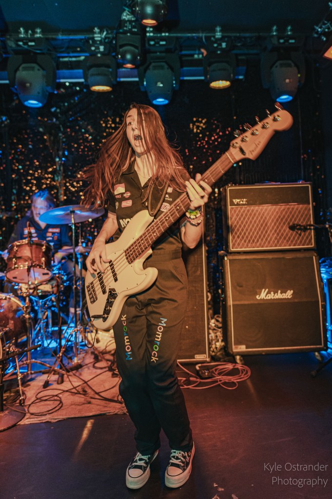 Earlier this week, Mom Rock took the stage with force at TV Eye in NYC. Even on a cold Thursday night, the venue was filled with excited fans, many of whom were sporting the band’s merch in support. Clearly no strangers to the stage, Mom Rock immediately showed why they’re one of the hottest live acts out there the second they started playing. The room was quickly filled with wailing guitars backed by melodic vocals and an incredibly tight rhythm section. The set included an array of the band’s music, including Dishes, Makes You Happy (which the band jokingly asked the audience to dedicate to someone they hate), and even a cover from the movie Scott Pilgrim vs. The World. The crowd of dedicated fans was eagerly singing along to almost every word throughout the entire set. The band matched their fans’ enthusiasm by playing with unbelievably dialed-in precision, all while running across the stage in their matching jumpsuits, and dancing with each other every chance they got.