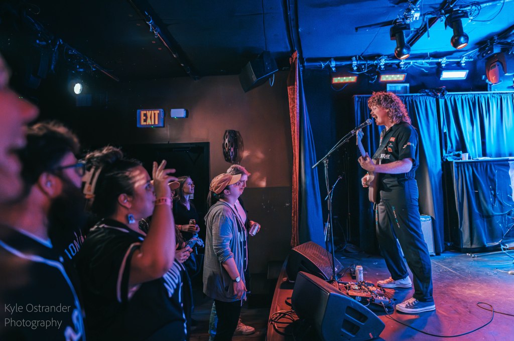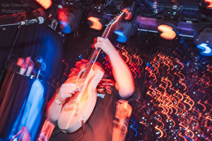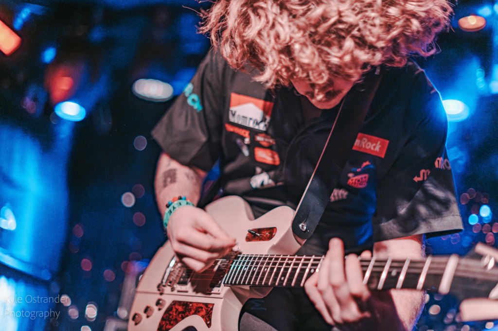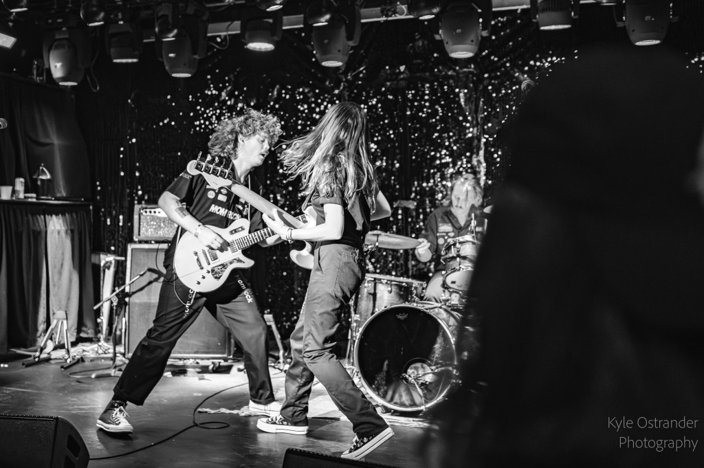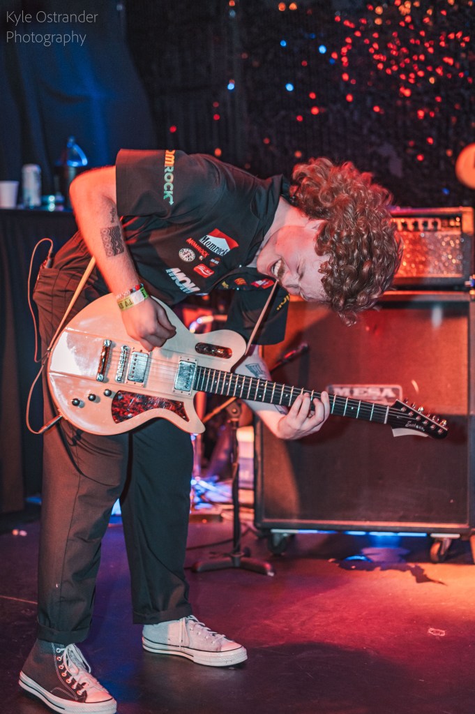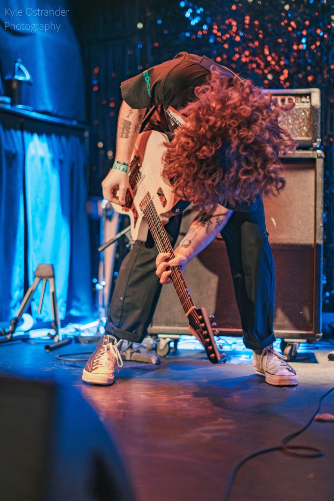 Earlier this week, Mom Rock took the stage with force at TV Eye in NYC. Even on a cold Thursday night, the venue was filled with excited fans, many of whom were sporting the band’s merch in support. Clearly no strangers to the stage, Mom Rock immediately showed why they’re one of the hottest live acts out there the second they started playing. The room was quickly filled with wailing guitars backed by melodic vocals and an incredibly tight rhythm section. The set included an array of the band’s music, including Dishes, Makes You Happy (which the band jokingly asked the audience to dedicate to someone they hate), and even a cover from the movie Scott Pilgrim vs. The World. The crowd of dedicated fans was eagerly singing along to almost every word throughout the entire set. The band matched their fans’ enthusiasm by playing with unbelievably dialed-in precision, all while running across the stage in their matching jumpsuits, and dancing with each other every chance they got.