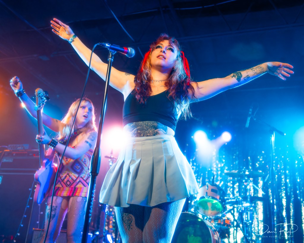 The band opened their set with the female-empowerment song ‘GIRLS TO THE FRONT’ which often appears in the middle of their set but is very effective as an opener. The song starts off slow and dark, slowly builds in intensity and tempo and then peaks with the word “girls!” shouted over and over again. With a quick transition into the edgy rocker ‘Jaws’, Babe Haven was able to bring the excitement level to maximum in just sixty seconds.