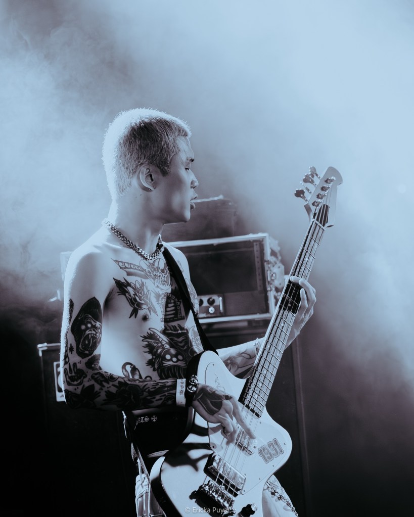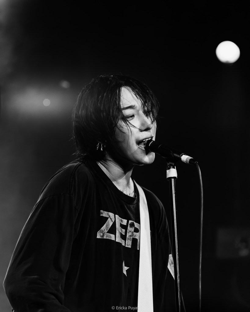 The packed crowd buzzed with anticipation as LØREN and his bandmates—guitarists Jack and June, bassist Mikey, and drummer Leeoh—took their positions on stage. The room erupted in cheers as the first notes of “All My Friends Are Turning Blue” filled the air, a perfect choice for an opening number. Its catchy melody contrasts with biting lyrics that call out those living life without drive or ambition. With a brief “갑시다 [let’s go]” to the band, LØREN seamlessly transitioned into “Folks” from his EP, Put Up A Fight. The reflective number also criticizes those who are quick to judge others without understanding the battles that they face, with LØREN singing, “My lies are getting told / These folks they’ll never know / Inside what’s left of my mind / And I should never show.” With every guitar riff, lyric, and drumbeat, the audience was pulled further into LØREN’s raw and emotional soundscape.