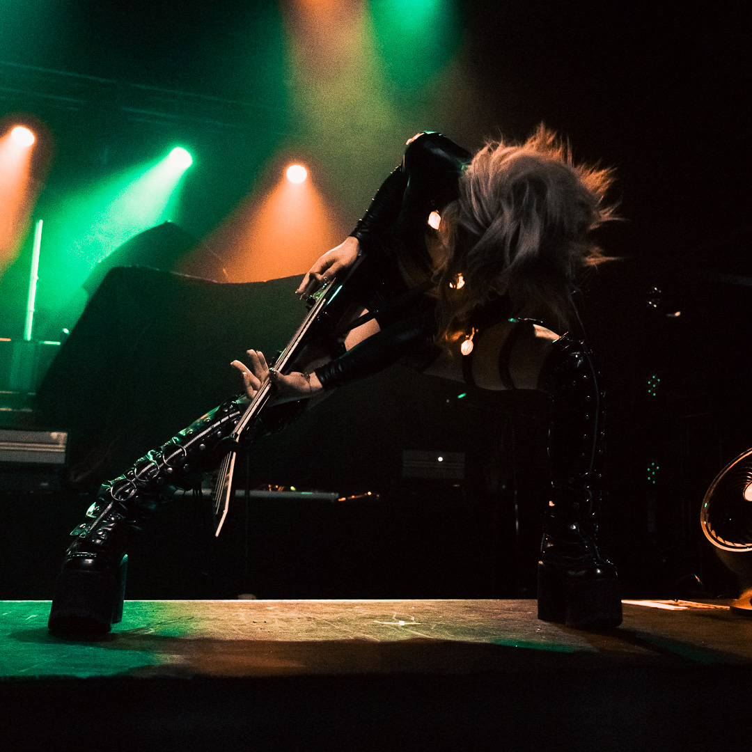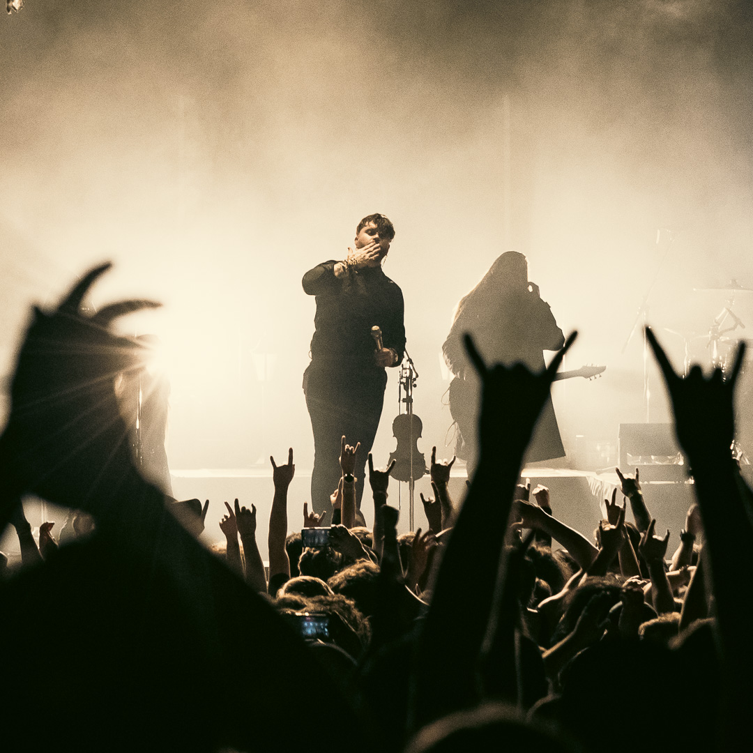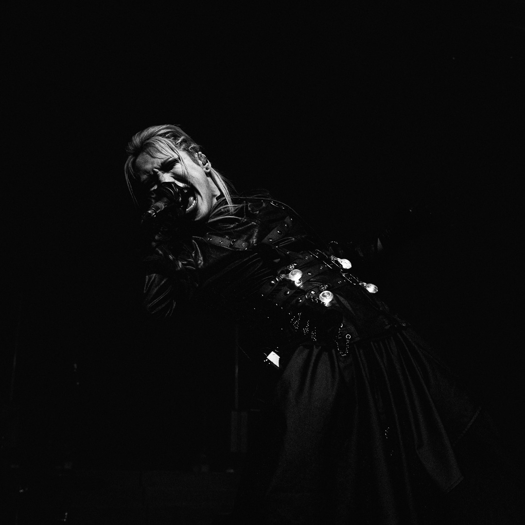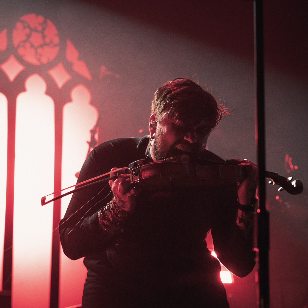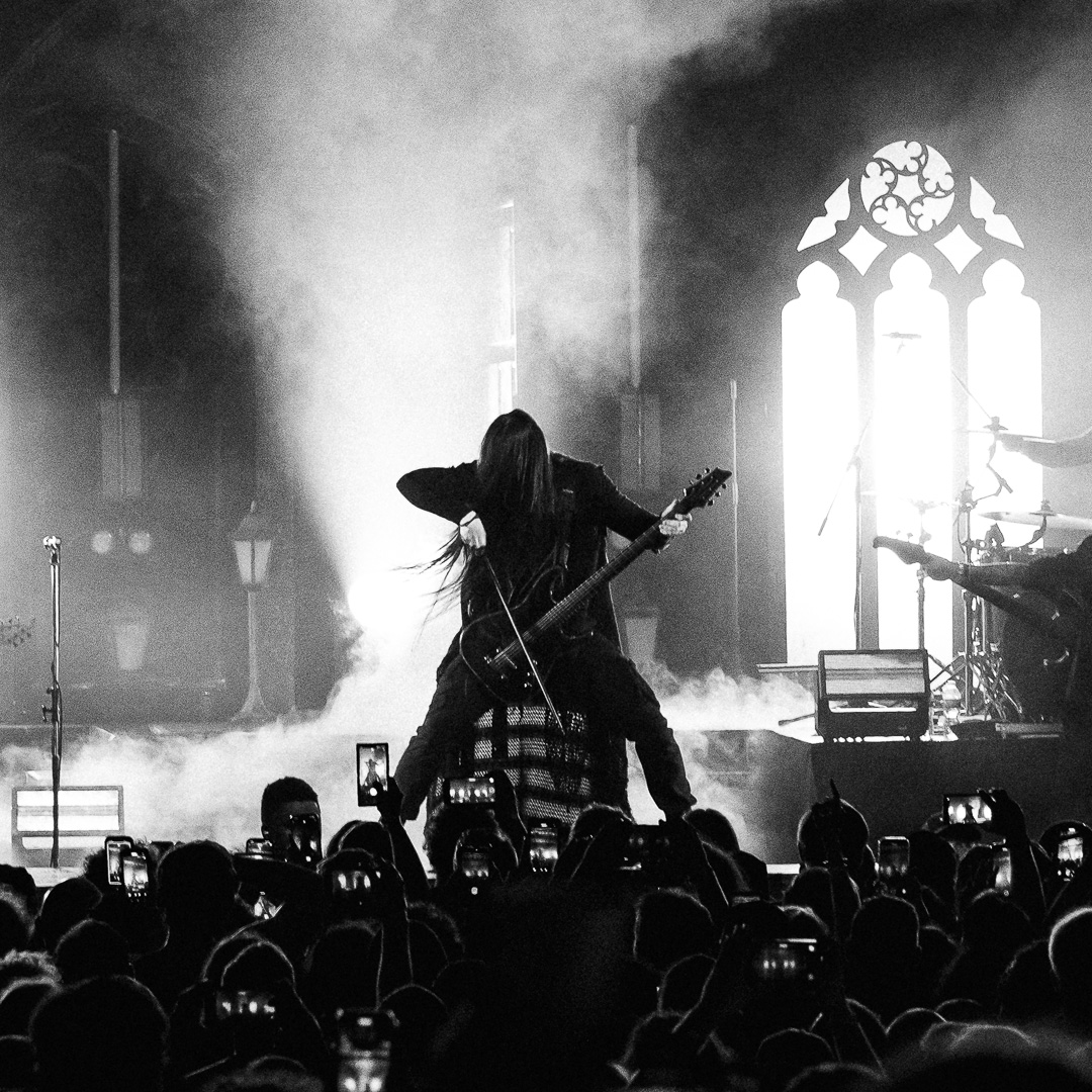 The night culminated in the highly anticipated performance by Imminence, and they exceeded all expectations. Their live show was nothing short of breathtaking—paraphrasing another photographer, it was a borderline religious experience for dedicated fans. Eddie Berg’s vocal delivery was flawless, moving seamlessly between raw screams and his emotive cleans. Guitarist Harald Barrett brought an intense theatricality to the performance, prowling across the stage and striking commanding poses, silhouetted dramatically against the backlighting. The stage design, featuring gothic window backdrops and a hooded choir singer, enhanced the immersive experience, adding to the band’s signature blend of metalcore and orchestral elements.