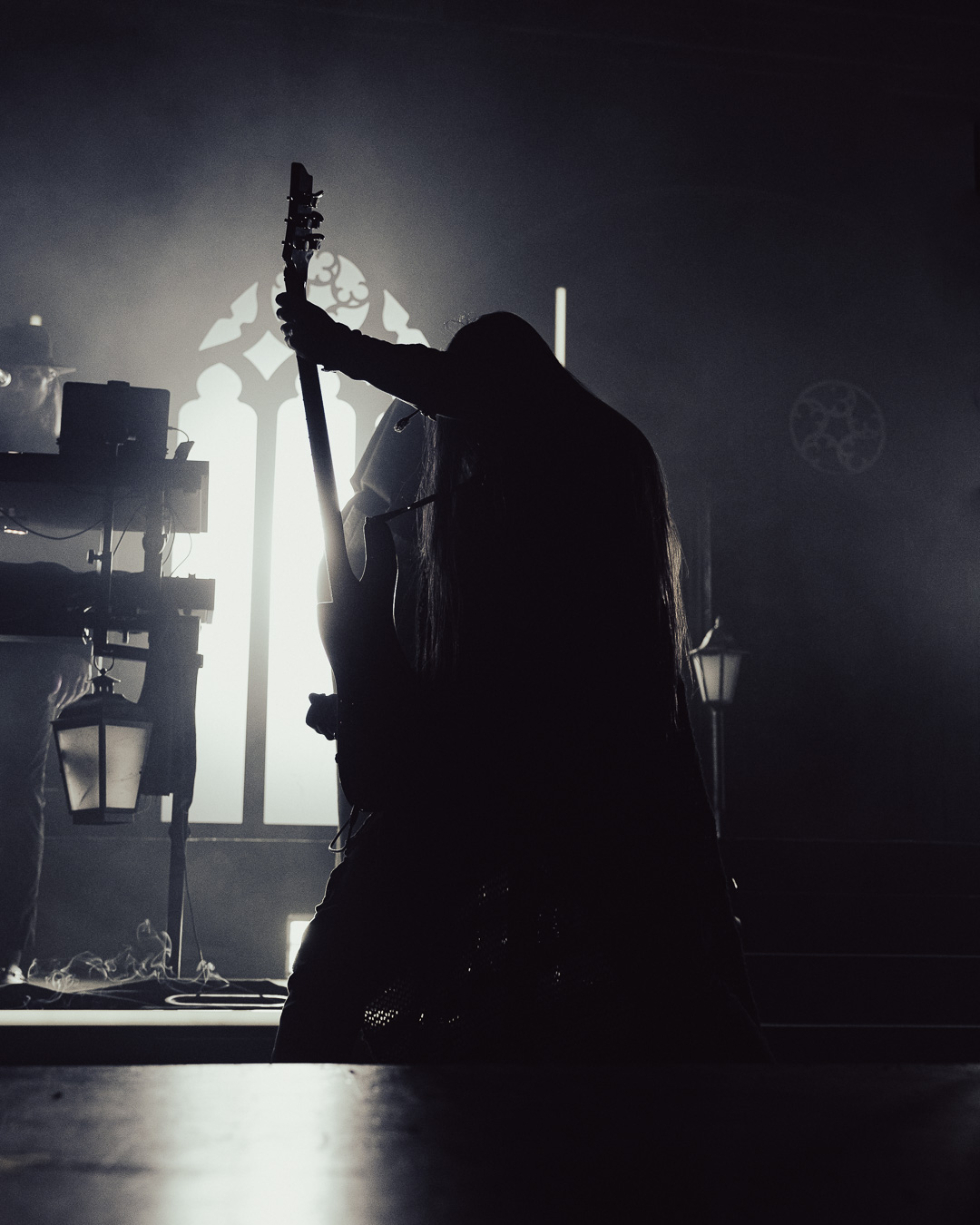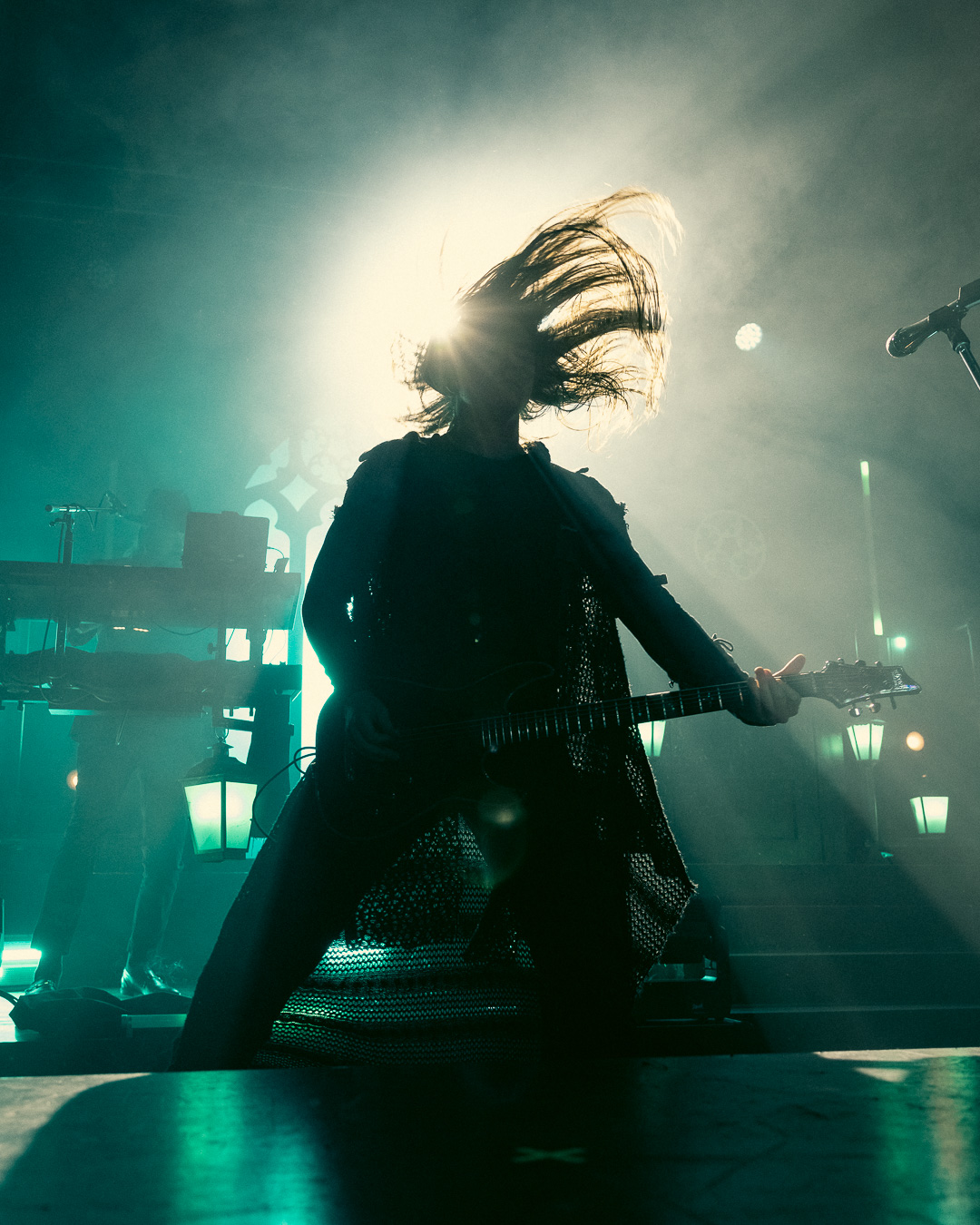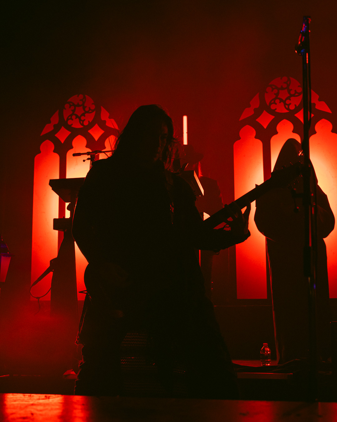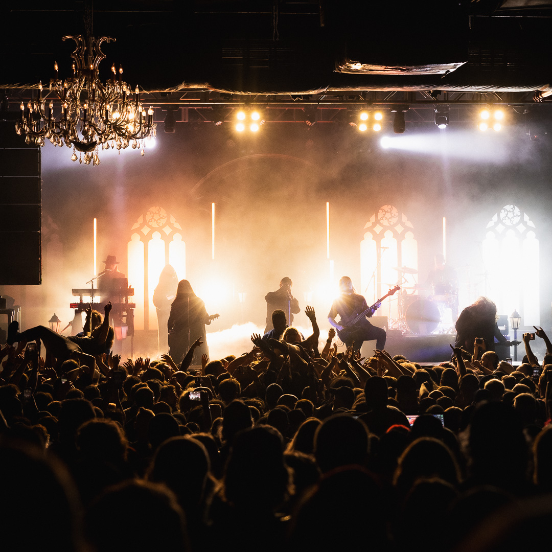 The night culminated in the highly anticipated performance by Imminence, and they exceeded all expectations. Their live show was nothing short of breathtaking—paraphrasing another photographer, it was a borderline religious experience for dedicated fans. Eddie Berg’s vocal delivery was flawless, moving seamlessly between raw screams and his emotive cleans. Guitarist Harald Barrett brought an intense theatricality to the performance, prowling across the stage and striking commanding poses, silhouetted dramatically against the backlighting. The stage design, featuring gothic window backdrops and a hooded choir singer, enhanced the immersive experience, adding to the band’s signature blend of metalcore and orchestral elements.