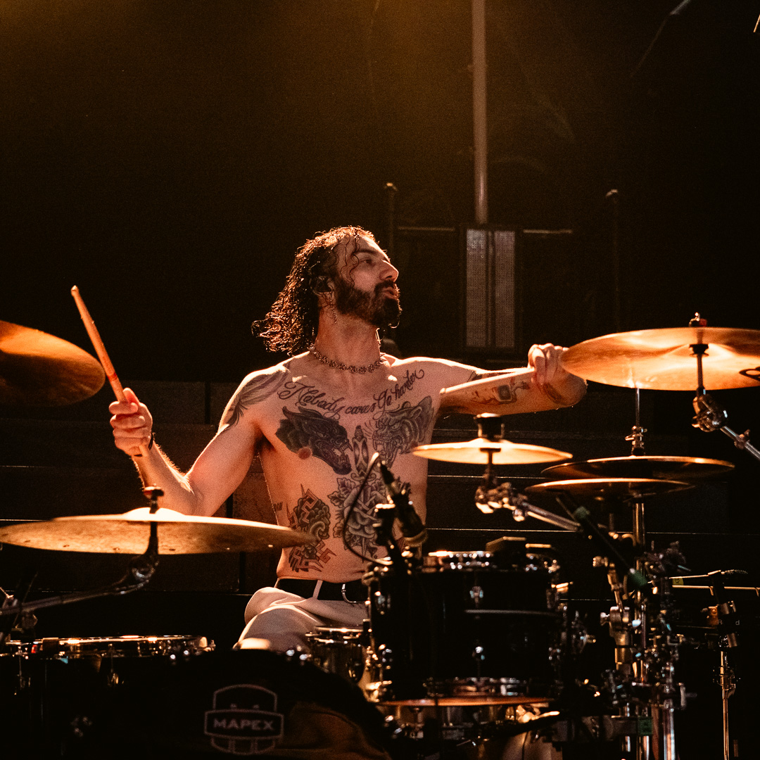 French metalcore act Landmvrks followed, making an immediate impact with their opening track, “Creature.” Vocalist Florent Salfati showcased his versatility, seamlessly transitioning from rapping in his native French to delivering crushing growls as the band dropped into their trademark sound. Their knack for infectious hooks and massive choruses kept the crowd engaged and energized. A standout moment came when Salfati took center stage for an intimate acoustic rendition of “Suffocate,” before the band rejoined him for an auditory gut-punch. Their dynamic stage presence and musical intensity made them a highlight of the night.