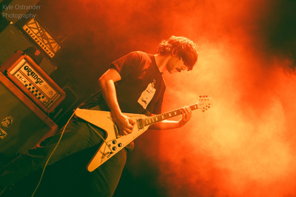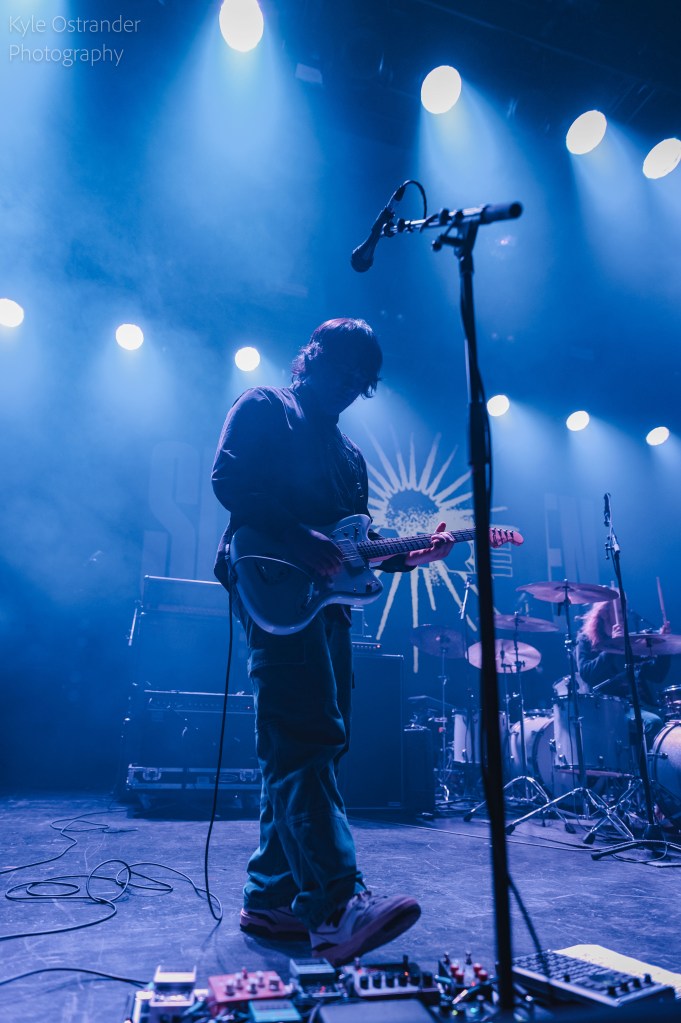Up next was Glare, who elicited elated cheers from the crowd well before their set even began. “They’re in NYC! This is amazing. I need them to start!” said a fan in the front row. As soon as the band struck their first chord, dreamy, distorted sound quickly canvassed the venue in a sea of hypnotic haze. Floating rhythm guitar with contrasting lead riffs sat on top of deep bass and driving drums. Lights saturated the stage in hues of red, blue, and purple, emulating the kaleidoscope of sounds we were all experiencing. The audience bobbed their heads and excitedly swayed to the rhythm, losing themselves in the music. The approximately 40 minute set featured cuts from across Glare’s catalog, including their latest release, Sunset Funeral. Equally impressive as their refined musicianship and live executions of their songs was the sharing of vocal responsibilities between band members. Each of the musicians took vocals on a few tracks, adding another layer of dynamic, as they all jammed out to the swelling sounds. “Thanks again everyone for coming out, and to our tour mates for making these shows so amazing. Let’s keep this going!” said the band during their set. Glare has a handful of festival dates already announced for this fall in the UK and US. You can find more details here.