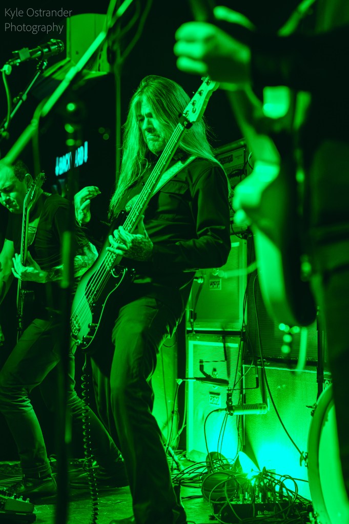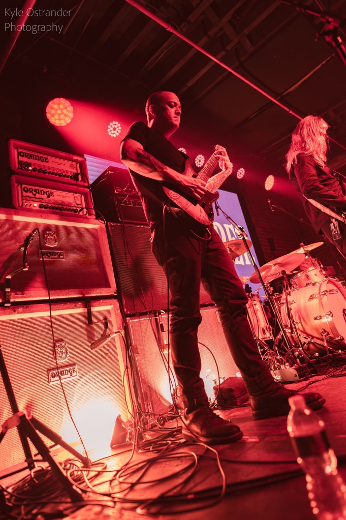 The intimate venue was the perfect space to be immersed in Pallbearer’s heavy and growling sound. The quartet took the stage as red lights lit up the venue, establishing the mood for what was to come. The set began with the building intro of “Silver Wings” before a wave of distortion and melody washed over the room. Fans responded to the cinematic music by approvingly bobbing their heads to the soaring lead guitar riffs. The rising momentum continued as the group dove into their next song, “Where the Light Fades”, a cut off their previously mentioned latest release. “Feel my head going under. Going under” sang the crowd with guitarist/vocalist Brett Campbell during the last verse of the song.