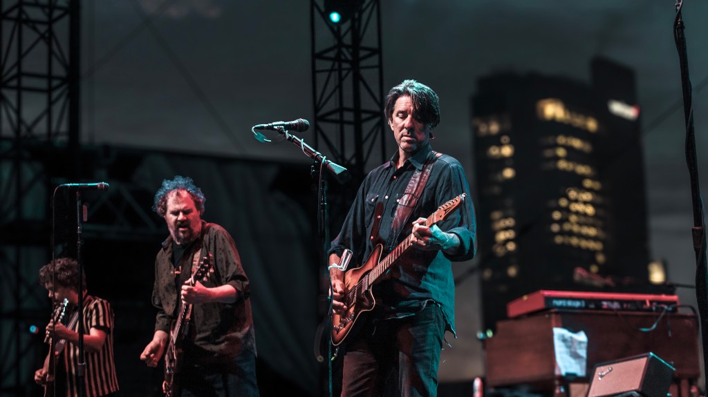By the time Deer Tick was finished the crowd was amped and the sky cleared for what turned out to be a beautiful sunset. As Drive-By Truckers took the stage, the sky was a mix of colors, the NYC skyline started to light up, and the crowd erupted as they kicked off their set with ‘Ramon Casiano’. From there they worked their way through fan favorites ‘Gravity’s Gone’, ‘Let There Be Rock’, ‘Drag the Lake Charlie’, ‘Women Without Whiskey’, and set closer ‘A World of Hurt’ with McCauley.