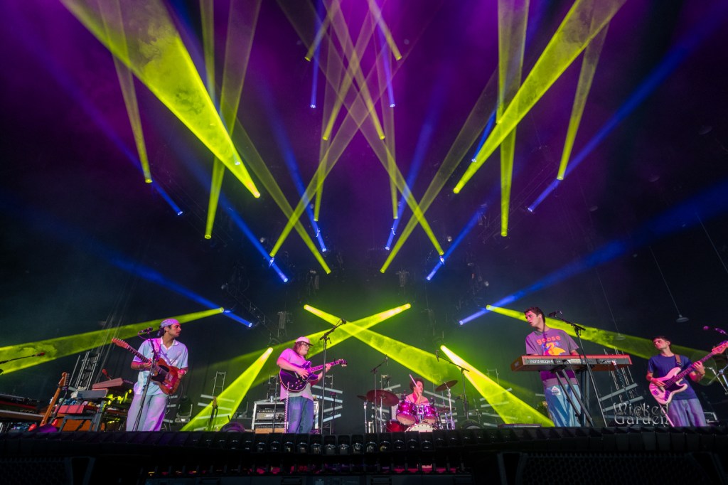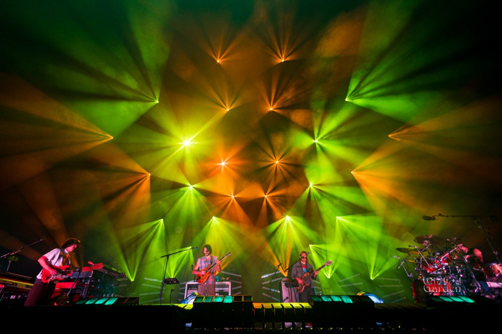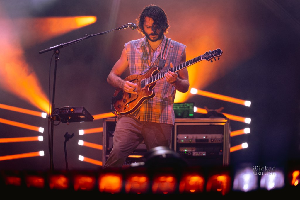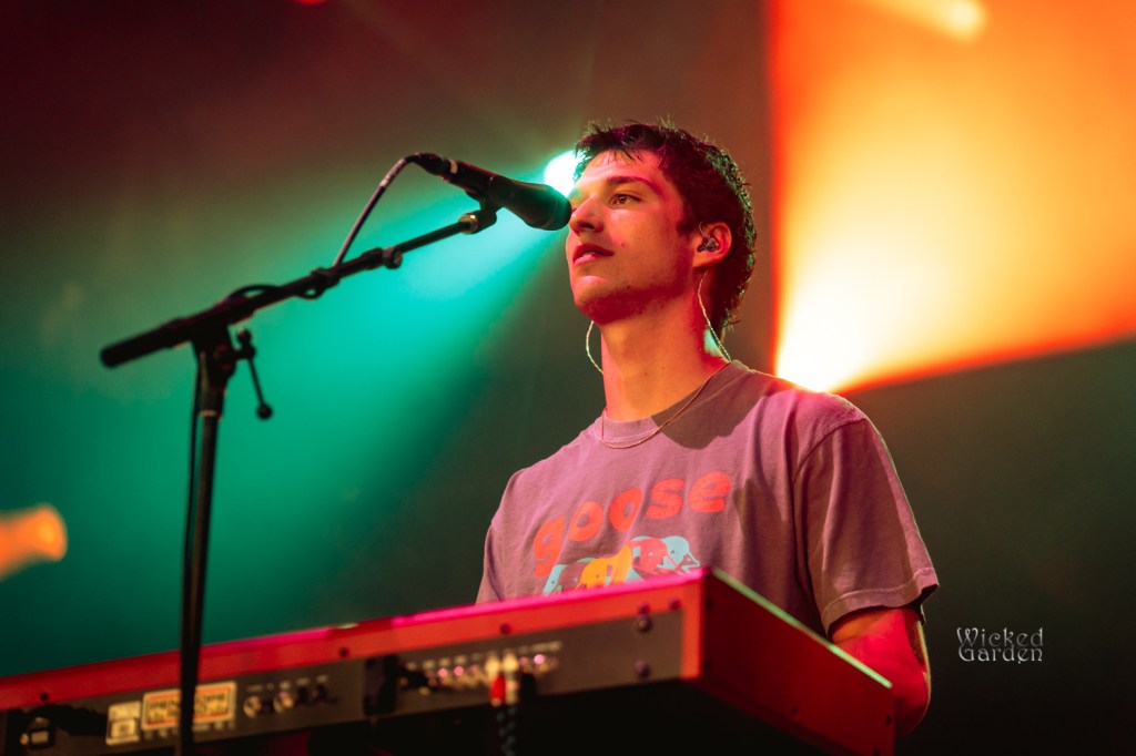 When the lights dimmed for Goose to take the stage, fans exploded with cheers, as ambient tones spiraled through the venue. The stage roared to life with the opening notes of the newly introduced track “Royal,” making its debut a month prior. Guitarist/vocalist Rick Mitarotonda led with his usual quiet charisma, with his smooth vocals soaring over soul-tintedguitar lines, while Peter Anspach’s keys and harmonies filled the space. Songs unfolded like living creatures as the composed parts would evolve into something completely different and unique from every other performance. A mid-set cover of the Grateful Dead’s “Me and My Uncle” drew a huge crowd reaction, as the band spent some extra time jamming between verses. Following the back-to-back slower songs “Your Ocean” and “Silver Rising,” they closed the set with a masterful 21-minute version of “Hungersite,” leaving a taste of what was to come after the break.