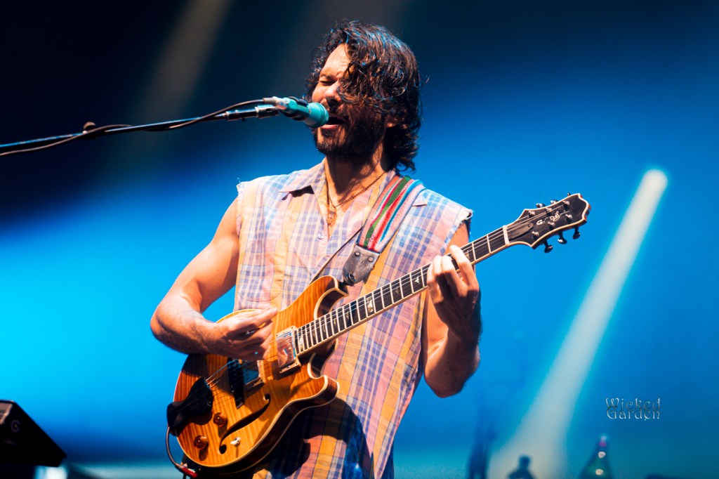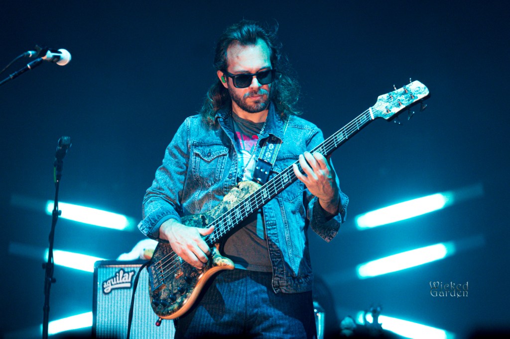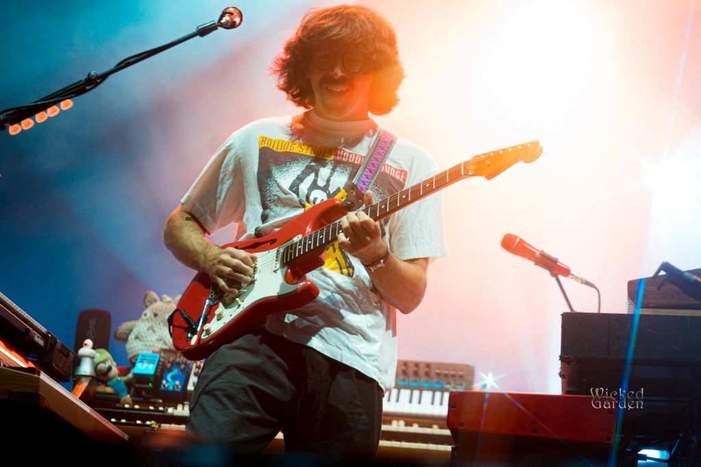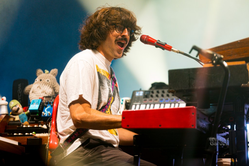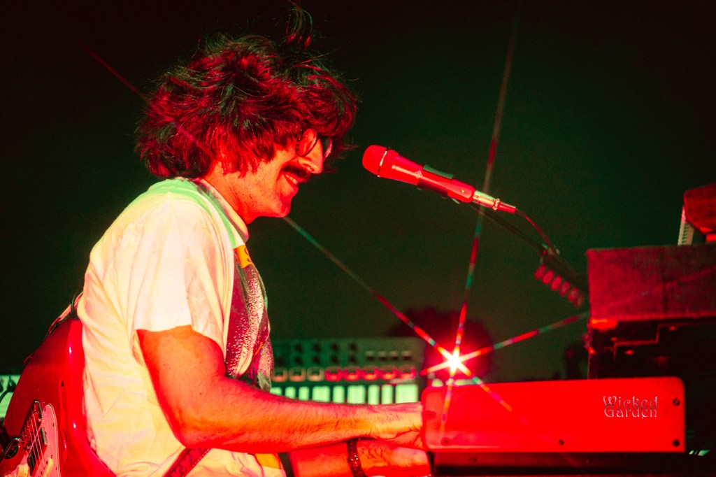 When the lights dimmed for Goose to take the stage, fans exploded with cheers, as ambient tones spiraled through the venue. The stage roared to life with the opening notes of the newly introduced track “Royal,” making its debut a month prior. Guitarist/vocalist Rick Mitarotonda led with his usual quiet charisma, with his smooth vocals soaring over soul-tintedguitar lines, while Peter Anspach’s keys and harmonies filled the space. Songs unfolded like living creatures as the composed parts would evolve into something completely different and unique from every other performance. A mid-set cover of the Grateful Dead’s “Me and My Uncle” drew a huge crowd reaction, as the band spent some extra time jamming between verses. Following the back-to-back slower songs “Your Ocean” and “Silver Rising,” they closed the set with a masterful 21-minute version of “Hungersite,” leaving a taste of what was to come after the break.