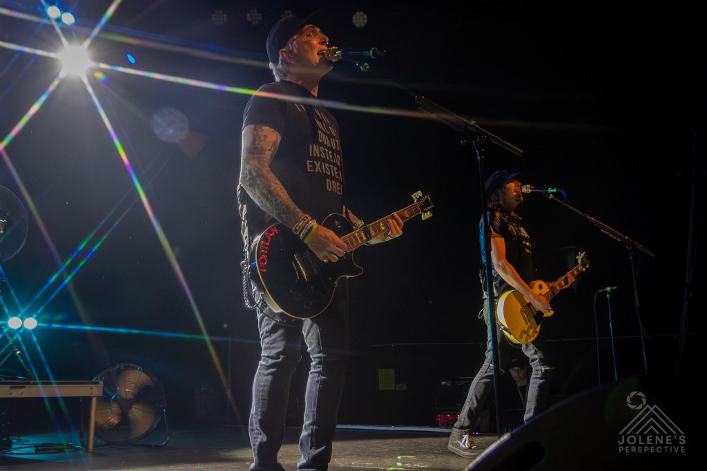 Mid-set, Alexakis paused to speak directly to fans living with disabilities and chronic pain. As an ADA photographer who battles stage-4 endometriosis and adenomyosis, I felt that acknowledgment deeply. Getting to a show takes grit; staying through the last chord takes even more. His shout-out wasn’t a detour—it was part of the show’s heartbeat.