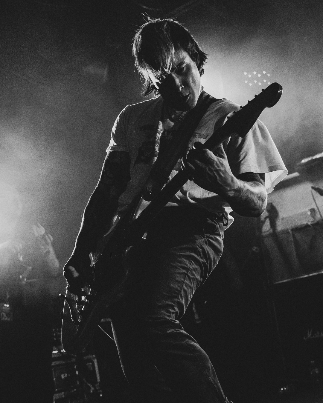 Then came Nuovo Testamento, who threw the whole night into contrast. Their glossy synthwave and dance-floor aesthetic might’ve seemed out of place on paper, but live it worked surprisingly well. The lighting, the atmosphere, the steady pulse all worked together to give the room a chance to breathe. It wasn’t the intensity the night started with, but it broke up the evening in a way that felt refreshing, and to their credit, most of the hardcore crowd seemed down to just ride the groove.