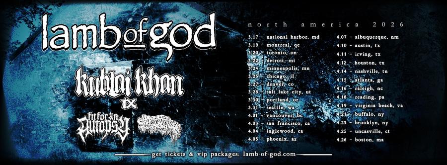 Lamb Of God returned to Raleigh, North Carolina at the Red Hat Amphitheater on April 16 with the ‘Into Oblivion’ North American Tour, featuring performances from Sanguisugabogg, Fit For An Autopsy, & Kublai Khan.