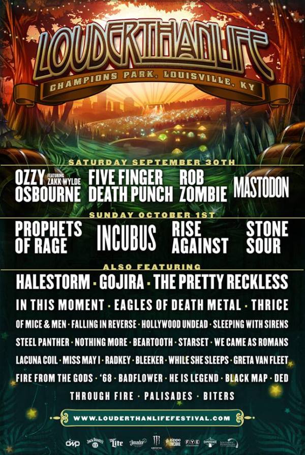 Louder Than Life RETURNS for the ultimate whiskey, food, and rock & roll experience! Ozzy Osbourne, Prophets of Rage, Incubus, Five Finger Death Punch, Rob Zombie, Rise Against, Mastodon, Stone Sour and MORE! Tickets go on sale Friday, June 2 at Noon EST at http://www.LouderThanLifeFestival.com. Rock legend Ozzy Osbourne -- recently reunited with guitarist Zakk Wylde... Continue Reading →