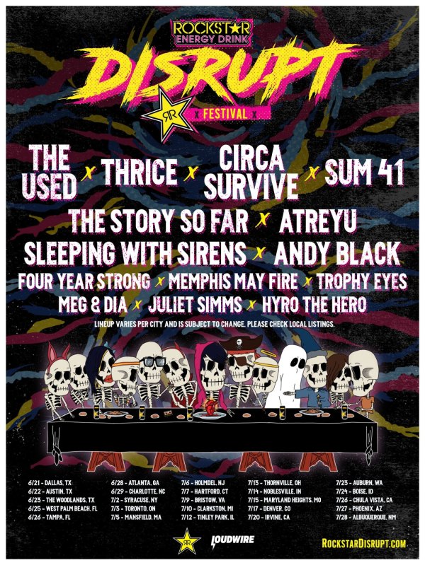 The Rockstar Energy Drink Disrupt Festival is a new music experience making its debut across North America this summer. The touring festival will feature unique lineups in each city, including The Used, Thrice, Circa Survive, Sum 41, The Story So Far, Atreyu, Sleeping With Sirens, Andy Black and more. You can visit rockstardisrupt.com for full... Continue Reading →