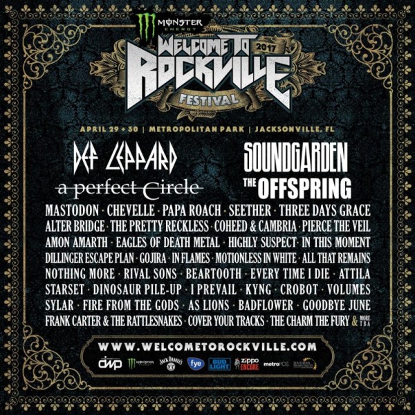 The initial band lineup has been announced for Monster Energy Welcome To Rockville, April 29 and 30, 2017 at Jacksonville, Florida's scenic Metropolitan Park along the St. Johns River. Rock legends Soundgarden (Saturday headliner), Def Leppard (Sunday headliner), and A Perfect Circle lead the music lineup for Florida’s biggest rock experience, which features over 40... Continue Reading →